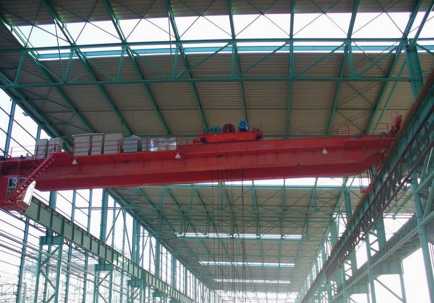 是橋架兩端通過運行裝置直接支撐在高架軌道上的橋架型起重機。它由橋架(包括主梁和端梁)、起重小車、大車運行機構(gòu)和電氣控制系統(tǒng)等部分組成。起重小車上裝有起升機構(gòu)和小車運行機構(gòu)在橋架主梁上沿小車軌道橫向運行;起重機沿廠房或露天貨場的高架軌道縱向運行,其掛梁方向分為與主梁平行和與主梁垂直兩種,并在掛梁下方裝有電磁吸盤,通過電磁吸盤完成物料搬運工作。